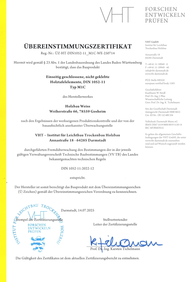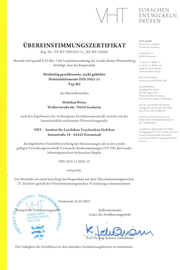 Die Fremdüberwachung erfolgt durch die VHT Versuchsanstalt für Holz- und Trockenbau Darmstadt.